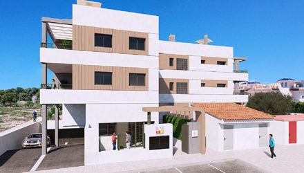 Es con gran alegría que podemos presentar la nueva promoción Riomar Healthy Living en Mil Palmeras, a sólo 10 minutos a pie de la playa. El complejo consta de 46 apartamentos. La izquierda son apartamentos de 1 dormitorio con 1 baño. Se distribuyen en planta baja, primera planta y segunda planta. Algunos de los apartamentos de la primera planta y todos los de la segunda tienen terraza en la azotea. Se puede acceder a las terrazas con los mismos ascensores que se utilizan para subir a la primera y segunda planta. Nueve de los apartamentos de la planta baja están adaptados para usuarios de silla de ruedas, con puertas, pasillos y cuartos de baño más anchos. Este proyecto está especialmente diseñado para personas que puedan necesitar un poco más de ayuda y seguridad en su vida. Todos los apartamentos están equipados con un botón que conecta con la asistencia 24 horas. Con esto puedes conectar con profesionales en cualquier situación de necesidad. Las zonas comunitarias están hechas con el mismo enfoque que los apartamentos, que es la calidad de vida. Las zonas cuentan con diferentes salas, como una sala de fisioterapia, una sala de belleza, una sala comunitaria y un gimnasio totalmente equipado. La comunidad también dispone de un cuarto para guardar bicicletas. La piscina comunitaria está adaptada para personas con movilidad reducida.